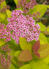 Massive, pink flowers adorn bright yellow foliage. The largest flowers ever seen on a Spirea. Foliage glows orange in the spring. Very little pruning is required, although deadheading will encourage reblooming. The Double Play series is bred for colorful flowers and foliage.