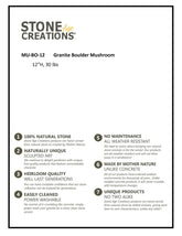 Our whimsical stone mushrooms can be found peeking out of gardens across the country!Natural Granite Boulder. 12"H approx 20 lbs