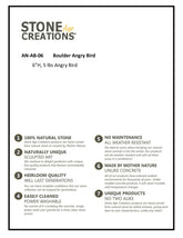 These adorable one-of-a-kind carved "angry birds" are great accent pieces around your garden or in your home. And they make perfect gifts! Since each boulder pet is unique height and weight are approximate. 6"H 3-4 lbs