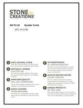 These turtles begin as a granite boulder that is selected because it has the proper size and characteristics needed to be transformed into a turtle. Each boulder is then carved and sculpted by skilled craftsmen to become unique works of art. Every piece will have its own character and variations in size and shape are to be expected. Since each item is unique size and weight are approximate. 10"L 9-11 lbs