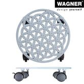 Wagner Round Plant Caddy in timeless cast iron in a smoky blue-grey shade. Twin wheel smooth-rolling casters glide easily over carpets and floors without marring or tipping. Casters are equipped with brakes for safe positioning. Water resistant finish so it can be used indoors or out. 110 lb capacity 11.4" diameter. The Wagner company located in southern Germany near the Black Forest has earned a reputation for exceptional quality. With over 40 years experience in design and manufacturing their products are rigorously tested for quality safety and durability.