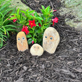 This adorable Family of Boulder Owls would be a great addition around your garden or in your home. They also make perfect gifts! They are made from Natural Granite Boulder with hand carved accents and smooth features. Since each boulder pet is hand carved it is unique in shape and color. This 3 piece set includes a 4" 1.5-2.5lb, 6" 8-9lb, & 8" 10-11lb Boulder Owl. Height and weight are approximate.