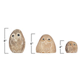 Family of Boulder Owls - 3 Pcs 4"H, 6"H, 8"H
