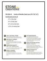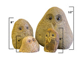 Family of Boulder Owls - 4 Pcs 4"H, 6"H, 8"H, 12"H