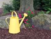Carrying up to 1.2 gallons of water this watering can make indoor or outdoor plant maintenance quick and easy. Two Convenient top and side handles make it easy to carry and allow better control when watering your plants. Reduce and prevent trips to and from your watering source with this reputable garden tool! This sturdy watering can features a screw-on leak-proof sprinkler head to prevent leaks and keep your watering process tidy. The removable sprinkler head function supplies a delicate rain-like stream that is gentle on your plants and flowers. Don't worry about losing your watering can in the grass! The bright vibrant design of these beautiful garden accessories will be easy-to-spot additions to your supplies. Constructed with powder coated galvanized steel this watering can is built to last for years. If you want to mix fertilizer into your water you can easily maneuver around the upper handle to customize your watering solution. 18"L x 7.5"W x 13"H 1.5lbs