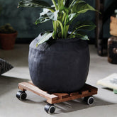 Wooden Plant Caddy - 11" Medium Wash Square Ribbed