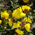 Bronze leaves and red stems open to canary yellow flowers.