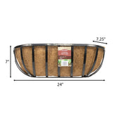 Flattened slat styling for a forged metal look and durable black gloss coating. Perfect below a window. Complete with coco liner. 24" Long x 7.25" Wide x 7" Height 3.7 Lbs.