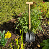 Compact shovels are ideal for camping and tight spaces. The T-handle design reduces hand and wrist strain. Serrated shovel is excellent for dividing sod and slicing through stubborn roots. Features include a one-piece forged steel head and an ash hardwood handle. Dimensions: depth 5.2" width 8.4" total length 32 inches weight 2.8 lbs.