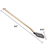 The nearly flat head makes digging borders much easier and faster. The T-handle design minimizes strain on the hands and wrists. It boasts a one-piece forged steel head and an ash hardwood handle. The dimensions are a depth of 5.6 inches a width of 8.6 inches a total length of 54 inches and a weight of 4.1 pounds.