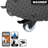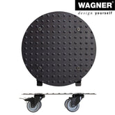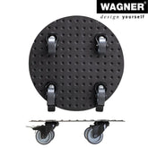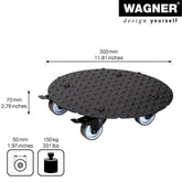 Wagner Medium Round Black Aluminum Plant Caddy in a fresh contemporary design. Made of solid rust-free diamond plated aluminum. Equipped with soft equipment casters providing protection on all surfaces won't scratch or mar floors. Two casters are fitted with a strong brake for easy and safe positioning. Surface design prevents pots from slipping. Suited for use in protected outdoor areas do not permanently expose to humidity. Made in Germany. The Wagner company located in southern Germany near the Black Forest has earned a reputation for exceptional quality. With over 40 years experience in design and manufacturing their products are rigorously tested for quality safety and durability. 331 lbs. capacity 11.8"D x 2.75"H 2.2 lbs