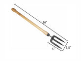 More than a tool it's an heirloom! The Drop Grip Forged Fork is great for cultivating in small areas. The longer handle on this tool allows you to use both hands to provide more leverage. The extra reach also makes it easy to break up dirt mud and soil clumps. Drop grip handle with bulbs on both ends to prevent hands from slipping off. Great for working in raised beds and when using a kneeler seat. A popular choice for seniors or those with back ailments. Constructed of tempered boron steel with ash hardwood handle. This tool is guaranteed a lifetime! Head: 5"L x 3.5"W Total: 26"L 0.8lbs