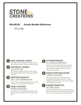 Our whimsical stone mushrooms can be found peeking out of gardens across the country! Natural Granite Boulder 5"H apporx. 2 lbs