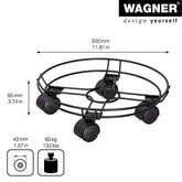 Wagner Round Black Wire Plant Caddy makes moving plants a breeze. Twin wheel casters glide over carpets and floors without marring or tipping. The Wagner company located in southern Germany near the Black Forest has earned a reputation for exceptional quality. With over 40 years experience in design and manufacturing their products are rigorously tested for safety and durability. 132 lbs. capacity 11.8"D x 2.5"H 1.1 lbs.